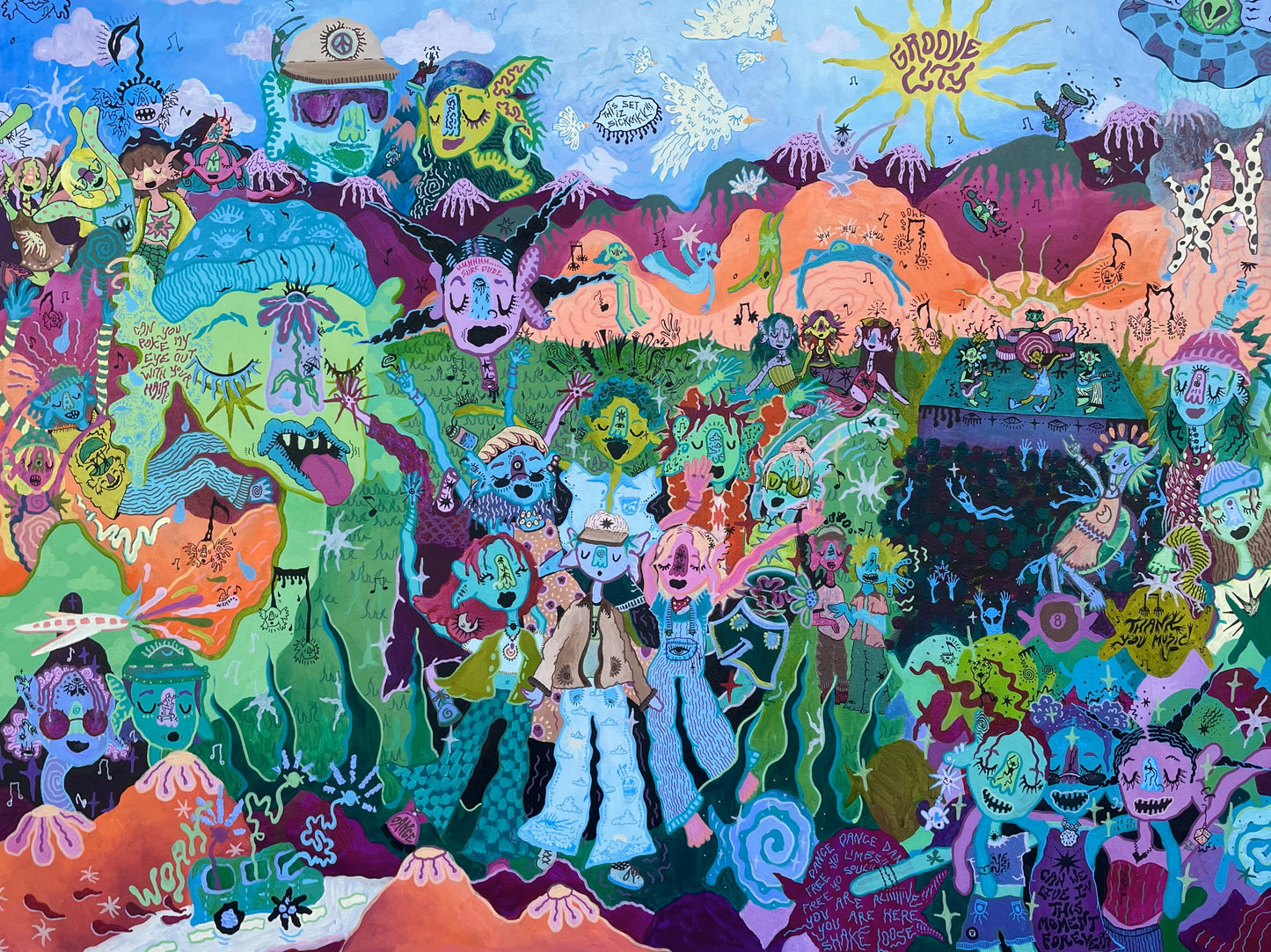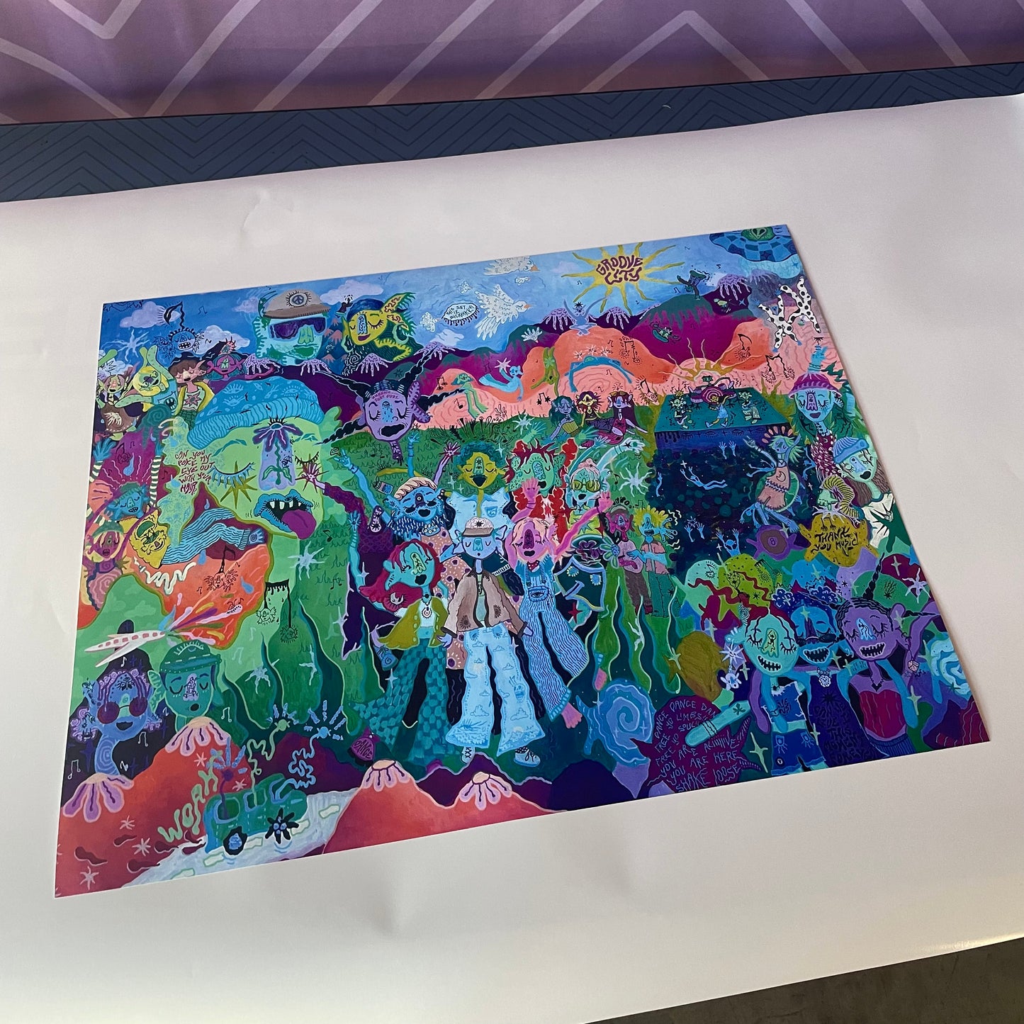 24 x 18 inch thick, gloss poster of original painting "The People You Meet at Concertzzz"